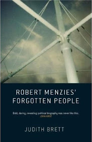 It is the fashion among today's "clever" people to pour scorn on those who influenced or controlled Australia's destinies in the past.  These earlier leaders were apparently misguided nincompoops who must be held largely responsible for the deplorable situation in which Australia now finds itself.  Although a rather too critical book, Judith Brett's Robert Menzies' Forgotten People avoids this absurdity.