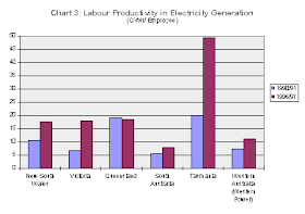 In fact, the productivity performance of the Victorian stations is greater that shown -- over the period since 1989 staffing in what was the State Electricity Commission has been reduced from over 12,000 to less than 2,000 (plus the equivalent of 500-1,000 in outsourced staff). Queensland, previously acknowledged as the most efficient of the Australian systems, has not shown an increase over recent years -- a major factor in the reforms introduced in that State in 1996.
