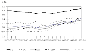 Australia has for several decades experienced low levels of productivity growth. The Industry Commission (IC) demonstrated that multi-factor productivity growth in Australia was 55% below the average of the small OECD countries in the years from 1970. (6) Multi-factor productivity is the residual increase in output that is not explained by increases in capital and labour inputs. The IC also points out that Australian productivity appears to have outpaced that of the rest of the OECD in the period 1989 to 1994.
