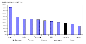 The following two charts compare productivity in Australia to that in other countries.