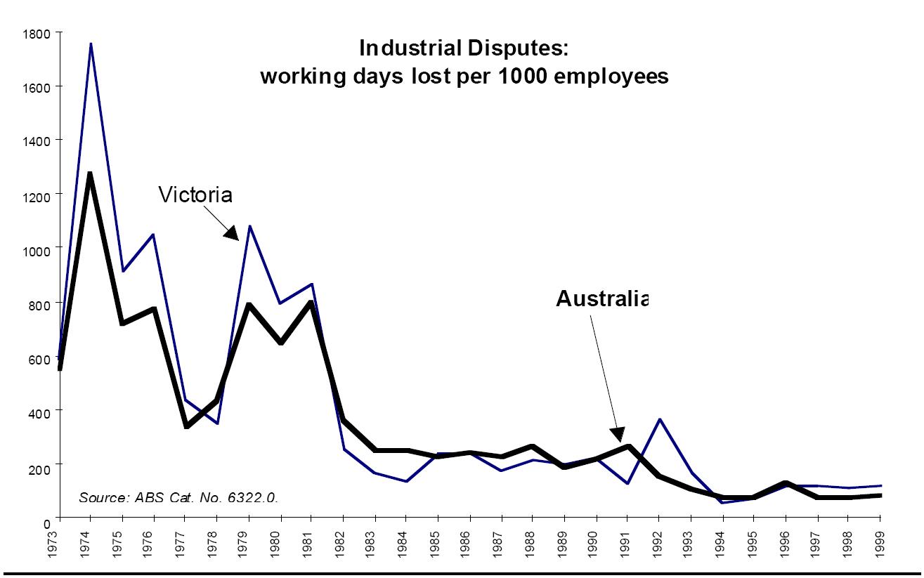 We do not support any contention that Victoria has some special labour market difficulties over and above those which afflict Australia in general. Victoria has broadly followed Australian patterns for industrial disputes, for example.
