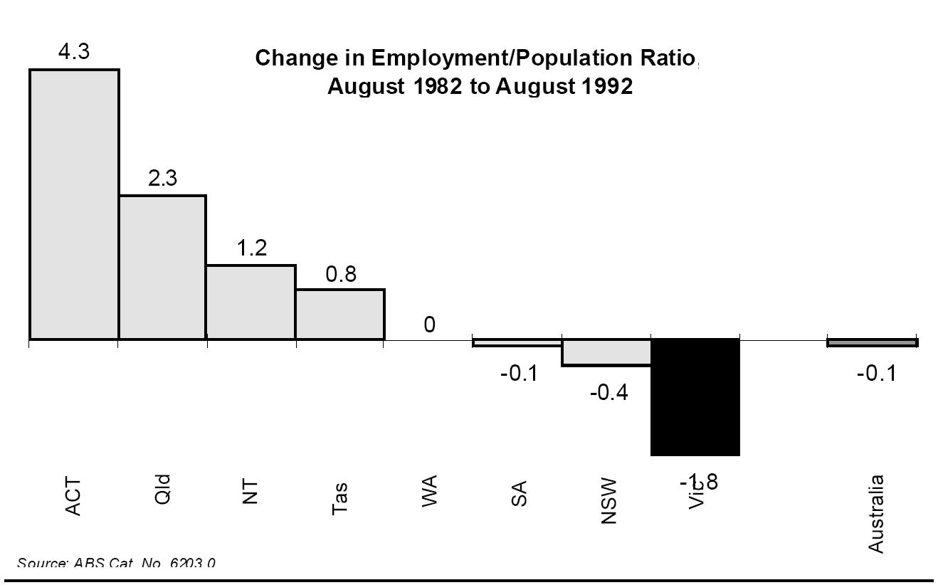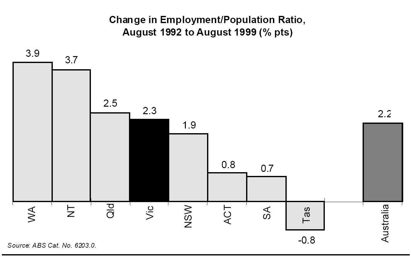 Moreover, Victoria has experienced employment growth very close to the Australian average over the recent economic expansion (change in employment/population ratio is used as an indicator, as that compensates for changes in population).