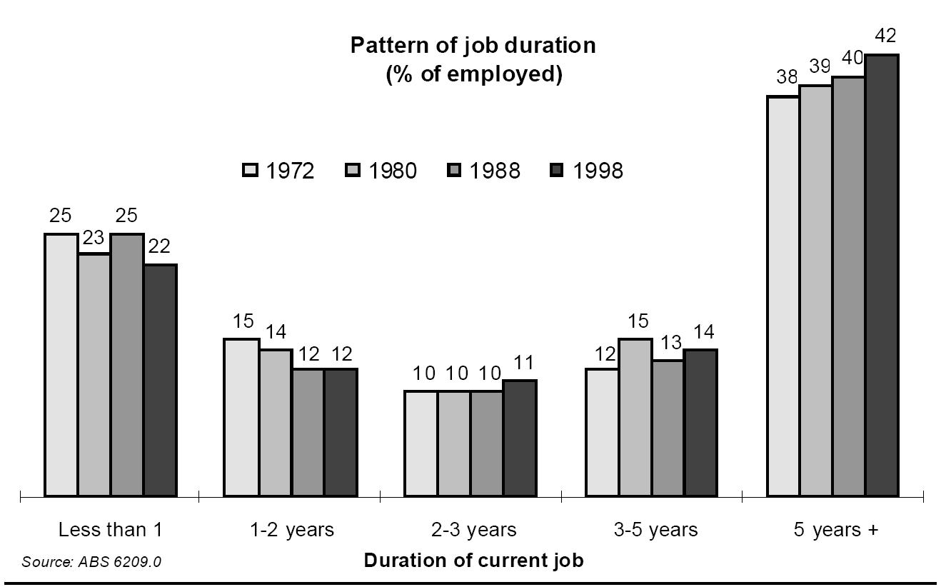 The growth in casualisation has been seen in some quarters as proof of increased job insecurity, although the job duration figures do not support this. Taskforce Chair, Professor McCallum, in his Whitlam Lecture, said in that lecture of casual employees that