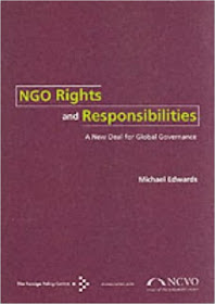 Why a new deal? Edwards observes that NGOs are increasingly under attack as being "self-selected, unaccountable and poorly rooted in society". Governments and corporations question their legitimacy in debates on global development. Within the sector, Third World NGOs are at times highly critical of their Western big brothers. He notes the criticism is a considerable challenge to NGOs because, "humility doesn't come easy to organisations that have been used to occupying the moral high ground".