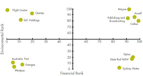 Western Power Corporation, owned by the Western Australian Government, rated much better on the second occasion because it began participating in the United Nations-inspired Global Reporting Initiative.  This meant that the survey was more readily completed, but the rise in the ranks was more a measure of effort in filling out the form than from any change in behaviour.