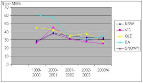 The NEMMCO 2004 Statement of Opportunities released at the beginning of August shows some tightening of demand in the Vic/South Australia region for the coming summer in particular.  It appears that Snowy is to build a relatively large gas fired plant in Melbourne and Basslink is progressing but these will not be available until December 2005.  It is also the case that the forecasting methodology may underestimate the plant availability, since it relies on forecasts from suppliers that are not independently verified.  In any event, the lack of a substantial forward price hike indicates that the retail industry is not anticipating shortages.