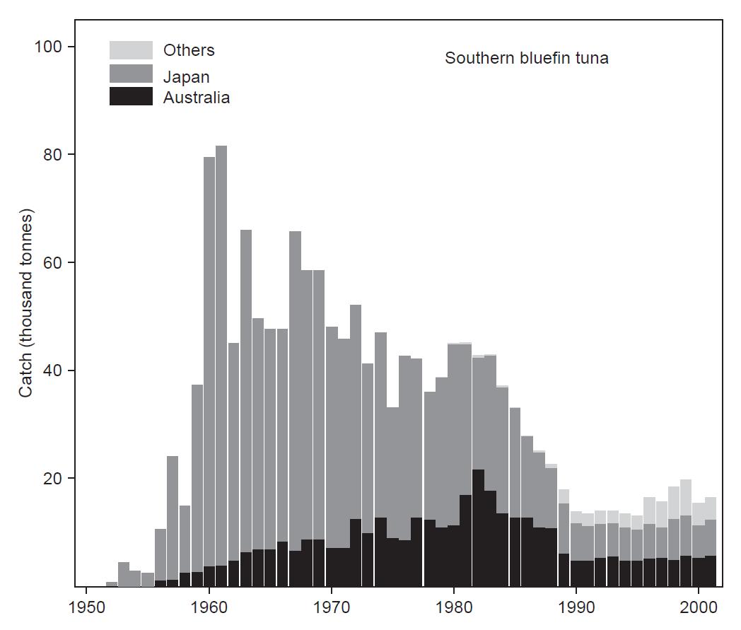 - Several marine fisheries appear to be over-fished, yet there is no formally agreed recovery plan for the same species, including the southern bluefin tuna fishery.