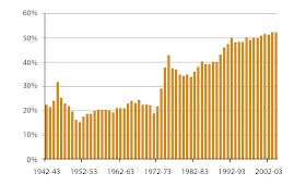 Between 1910 and 1942 the states share declined largely as a result of the expansion of the Commonwealths tax base.  In 1942, the states' share decline sharply as a result of the Commonwealth taking over income taxing powers from the states.  This was initially put forward as a temporary war measure, but remained.