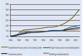 The Productivity Commission shows that while the building costs of houses increased by 100 per cent over the past 20 years (partly because house size has increased) land blocks over the same period increased by 250 per cent -- in spite of blocks sizes being reduced. The upshot is that typical housing costs on the periphery of Sydney account for only 37 per cent of the house/land package; in Melbourne the share is 47 per cent.