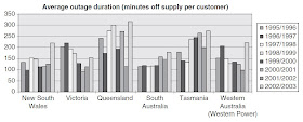 • The risk that regulators will offer inadequate incentives for expansions and optimal maintenance.  Major price reductions have been insisted upon by several state regulators.  Regulated businesses are always likely to profess dissatisfaction at such outcomes but a risk remains that price cuts can deter investment.  Such requirements may have been a feature of the fragility of distribution networks, especially in Queensland where the regulator demanded a 17% cost saving of the largest distributor, Energex, which was heavily criticised following power outages in 2005.