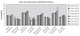 • Interventions favoring subsidised and uneconomic generation can suppress demand, which means reduced new investment especially in the sort of energy intensive industries that Australia is well placed to win.  The various schemes like MRET and NGAC add costs to industry and in the case of NSW, mean that some 23% of electricity is now slated to be subsidised;  this probably rules the state out of consideration for major new energy intensive industry.  Less draconian measures are in place in other states - Queensland has its 13% gas requirement and Victoria was less than firm in controlling its state financed green groups who campaigned to prevent the Hazelwood expansion;  nor has the state made a wise choice in its appointment of a relatively activist Presiding Judge to the Land and Environment Court whose legal interpretations prolonged the case and added expenses.