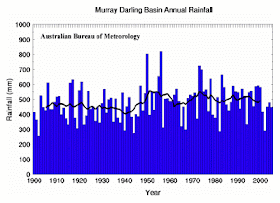 Rainfall may not have been exceptionally low, but there is certainly a water shortage and not just in the Murray Darling Basin.  Metropolitan Australia is also suffering.  But perhaps the water shortage in our cities has more to do with a lack of investment in water infrastructure coupled with a steady increase in population, than global warming?  Perhaps water shortages in the Murray Darling Basin have been exacerbated by how we are now managing the landscape based on a past fear of rising ground water?