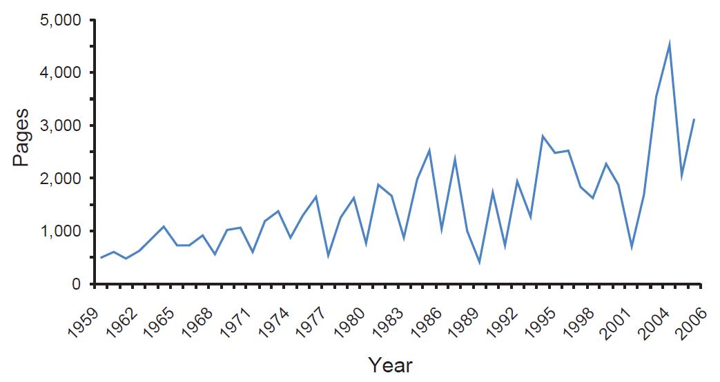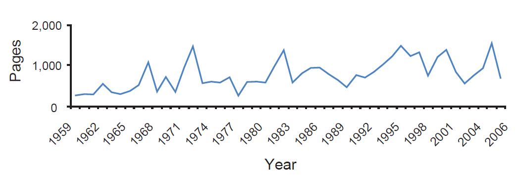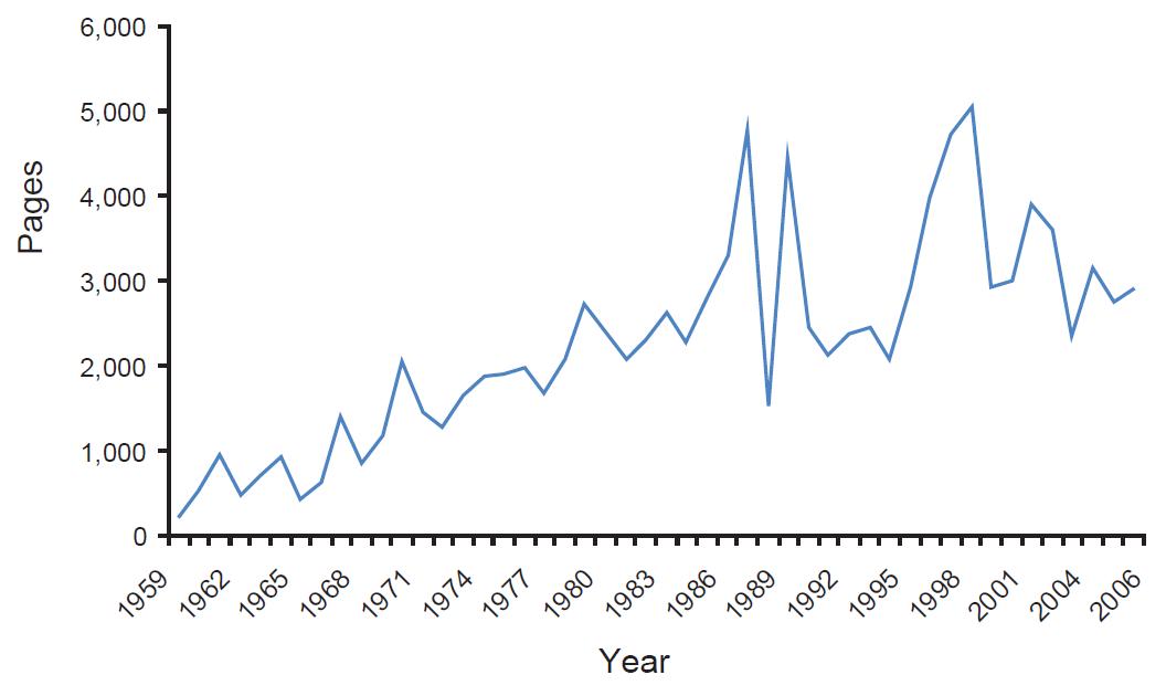 While the growth in legislative activity has been sustained over time, it is interesting to note the dramatic increase over the past few decades. For instance, if we mark the year 1980 as the beginning of the reform period in Australia, through 2006, more than five times the number of pages of legislation than it had in the eight decades preceding it.
