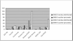 Lack of seamless transmission links between the main states leads to the different prices, observed in average terms in Table 2. In order to mitigate risks, NEMMCO auctions "settlement residues", which are the price differences that occur when market prices separate due to transmission congestion. This allows price hedging for trades between regions. But there is no perfect hedge since the lines' capacity is unpredictable and often fails causing congestion and major price divergence. When lines' capacity is reduced, so is the amount of settlement residue. Settlement residues auction returns and residues paid out are shown in Figure 10.