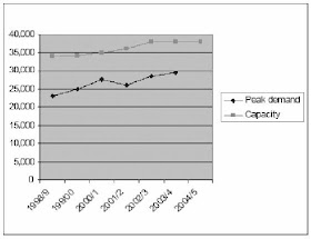 Figure 8 Peak demand and capacity in the NEMSource: Electricity Supply Association of Australia, Electricity Australia 2006.