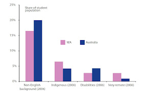 Certain types of disability require specially trained teachers and methods. The proportion of disabled students was relatively low in WA in 2006. (11) However, this may reflect tighter criteria in WA for accessing special education services and programs. (12)