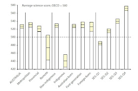 Figure 11: Australian science scores by region, social background, migrant and indigenous statusSource: "Exploring Scientific Literacy from Australia's Perspective" ACER (2008), pp73-76
