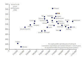 In terms of student performance compared to public dollars spent, WA school system gets good value for money by comparison with the rest of Australia and the developed world.