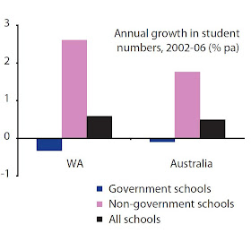 By contrast, WA's government school rolls have declined by 4,000 over the same period (with a small bounce back in 2006) -- see Figure 3.