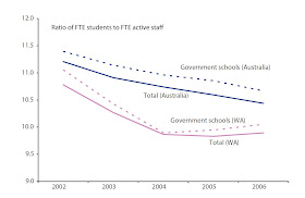 With trends in WA non-government school numbers catching up with the rest of Australia, this has helped a little in reducing the number of staff per student in the Western Australian government school sector.