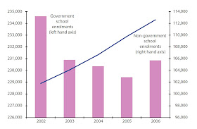 From 2002 to 2006, WA government school student numbers have been declining more quickly than for Australia as a whole. WA non-government school student numbers have been growing more quickly -- See Figure 4.