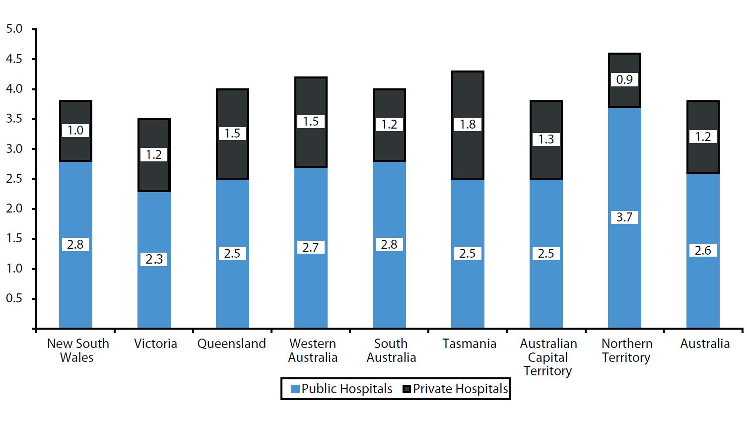 Figure 2: Available Beds in Public Hospitals Per 1000 PeopleNote: WA figures exclude beds available to public patients at Joondalup and Peel