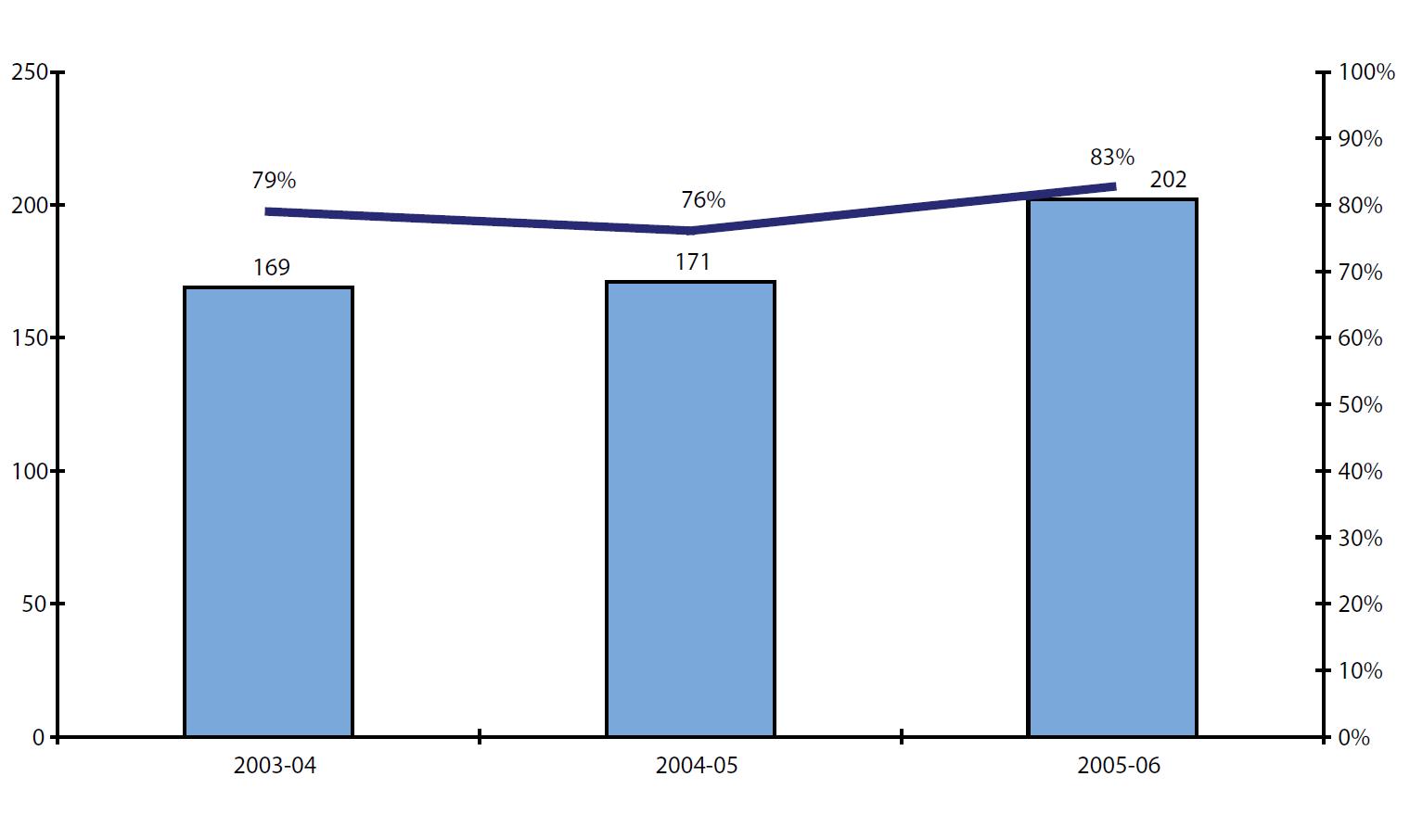 Over the period shown in Figure 16, expenditure on private hospitals by the WA Government to provide services for public patients has been significant, starting at $169 million in 2003-04. Expenditure on private hospitals by the WA Government subsequently grew by almost 20 per cent in the two years to 2005-06 to reach $202 million.